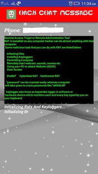 Please note that this is PRANK simulator app that creates an impression of hacking Chat Message data.