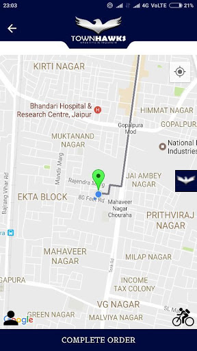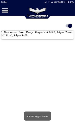 THawks Rider (A sub part of Townhawks) is basically app for Rider side app. Using this app, Rider can start app, get notification for all new order assigned (for nearest Riders) & accept that.