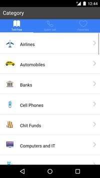 1. Access all toll free number of india sorted by different categories