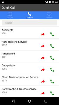 Quick Call Section : This gives you list of all EMERGENCY helpline numbers, like Ambulance, Fire Station, Police, Blood Bank, Child/Women/Sexual Abuse,Earthquake, HIV AIDS etc