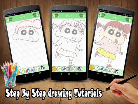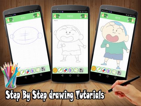 This Apps is a step by step instruction which will teach you How to Draw Shin Chan Characters. Like a personal art teacher, it will teach you how to draw dozens of different objects step by step and create amazing design, you can choose a character that you like and start to draw it.