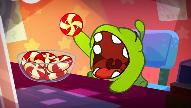 If the candy drops off-screen or gets destroyed, Om Nom will groan in disappointment and make a sad face. OmNoom is a very sweet little creature, unless Spiders steal its candy. If the player touches it, it would either do a handstand, look both ways or wave at you. If the candy gets near it, it will open its mouth wide. It is also considered as a very cute character. Yummy.