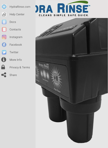 The Hydra Rinse app provides quick, easy access to: