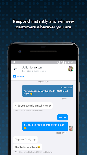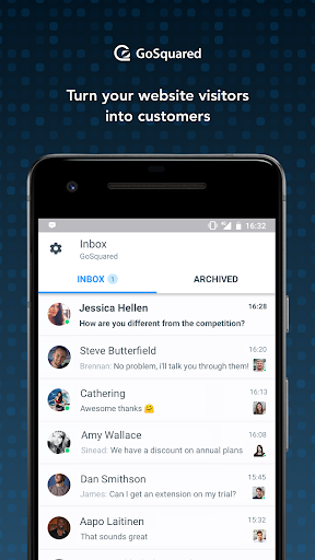 GOSQUARD দ্বারা ইনবক্স অ্যাপ্লিকেশনটি তাদের গ্রাহকদের কাছ থেকে তাদের গ্রাহকদের কাছ থেকে লাইভ চ্যাট বার্তা সাড়া দেওয়ার ক্ষমতা দেয়।