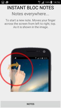 To start a new note, moving your finger across the screen from left to right, top.