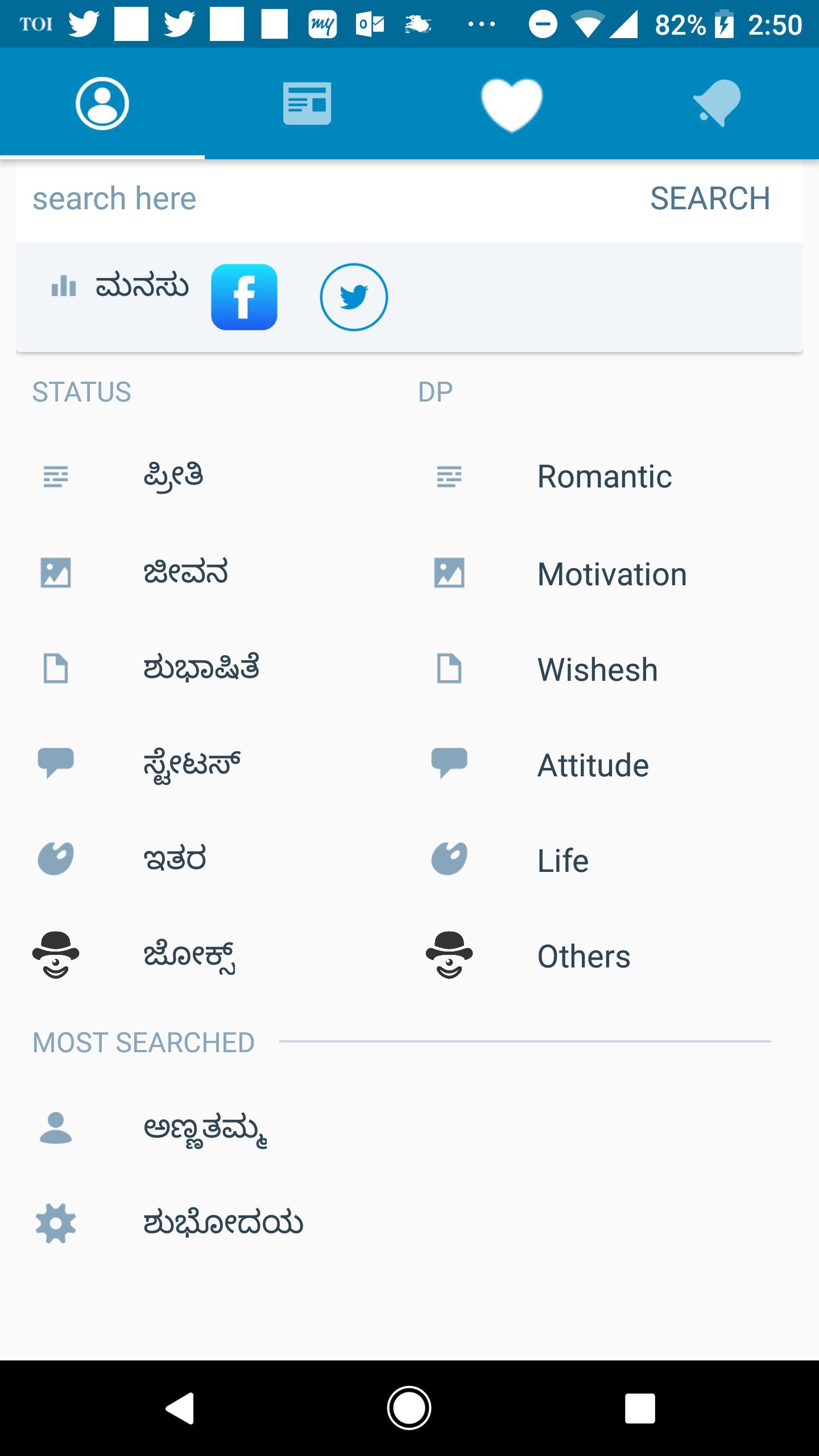 You can search into thousands of status and DP , searching is in kannada language.