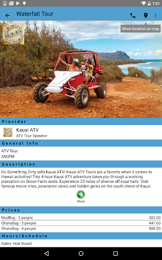 আমরা বৈদ্যুতিনভাবে সামাজিক মিডিয়া এবং অন্যান্য ওয়েবসাইটগুলি পর্যবেক্ষণ করি যাতে আমরা মূল্য, সময়সূচী, এবং বন্ধ করার সাথে সাথে আপ টু ডেট করি Kauai উপর নতুন কার্যক্রম এবং রেস্টুরেন্ট।
