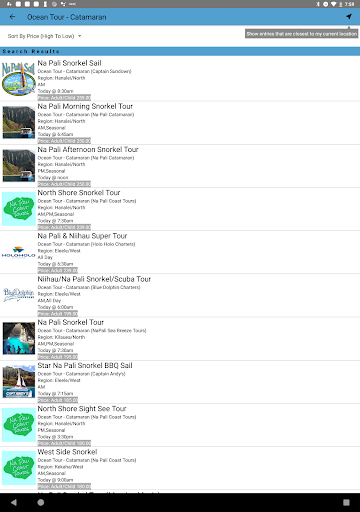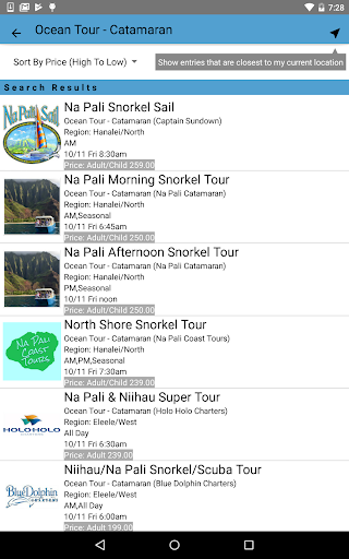 একটি বোতামের ধাক্কায় আপনি দ্বীপের সমস্ত প্রদানকারীর সমস্ত ট্যুরের জন্য মূল্যগুলি দেখতে পারেন।