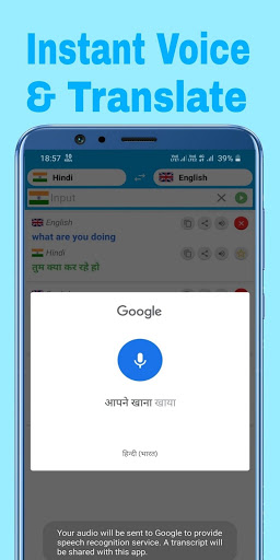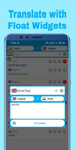 এটি ইংরেজি থেকে হিন্দি এবং হিন্দি থেকে ইংরেজিতে একজন নিখুঁত অনুবাদক এবং আরও বেশি ভাষা রয়েছে যেমনটি বাংলা, গুজরাটি, মারাঠি, তামিল, তেলেগু , মালয়ালাম, ইন্দোনেশিয়া, ফ্রেঞ্চ, জার্মান ইত্যাদি ...