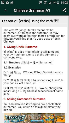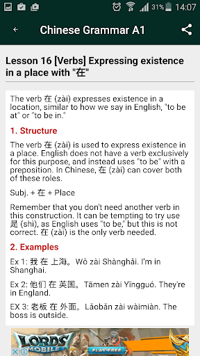 With many example in each lesson , you can easy to learn Chinese Grammar A1. Following our app, your grammar will be consolidate Chinese Grammar.
