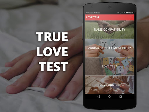 সত্যিকারের প্রেমের পরীক্ষা যা আমরা আপনাকে প্রস্তাব করি আপনি আপনাকে সামঞ্জস্যপূর্ণ লক্ষণ এবং নাম সামঞ্জস্যের হিসাব করতে পারবেন। এটি প্রেমের প্রশ্নগুলির সাথে একটি দম্পতির পরীক্ষা এবং চিত্র এবং ওয়ালপেপারগুলির সাথে সুন্দর প্রেমের বাক্যাংশগুলির সাথে একটি অতিরিক্ত বিভাগের অন্তর্ভুক্ত রয়েছে। আপনি প্রেম শতাংশ জানতে চান? আপনার সঙ্গী বা একা আমাদের সাথে আমাদের সামঞ্জস্য পরীক্ষা নিন এবং বিনামূল্যে এটি পেতে!