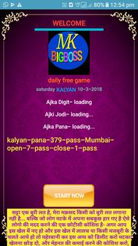 android app gives you the fastest results that no other app does. Download our app for fast kalyan matka result, main mumbai, milan day-night rajdhani day-night super fast live online matka results and free guessing. In addition, if you want to get info on satta matka chart record and kalyan matka tips and gali disawar shalimar game, download MK Bigboss android app now. MK Bigboss is currently the no.1 sattamatka mobile app at the stores.