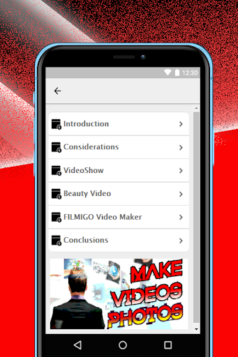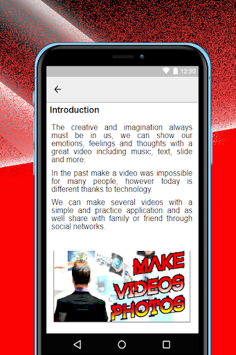 Note: It is important that you are aware that with the tutorial contained in this app, you will exclusively learn to download and install an app to make free photo and music videos.