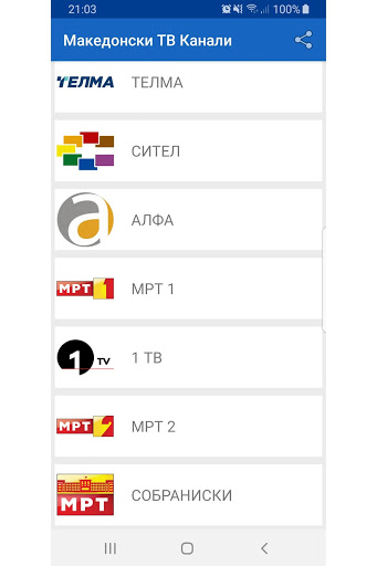 এক জায়গায় ম্যাসেডোনিয়ান টিভি চ্যানেলগুলির বেশিরভাগই: - টিভি 24 - চ্যানেল 5 - টেলিমি - সিটেল - আলফা - এমআরটি 1 - 1 মিগ্রা - এমআরটি 2 - সংসদীয়