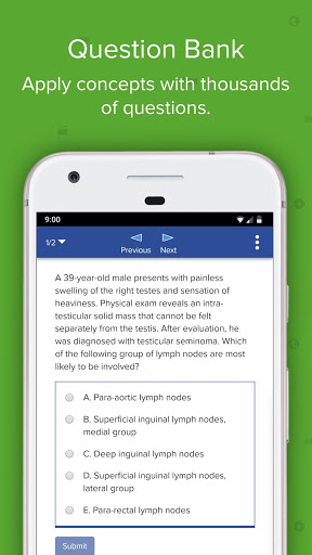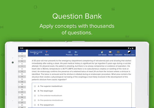 • একটি পরীক্ষা-সিমুলেশন ইন্টারফেস আপনাকে প্রকৃত পরীক্ষা পরিস্থিতিতে (USMLE) এর সাথে পরিচিত হয়ে উঠতে সহায়তা করে