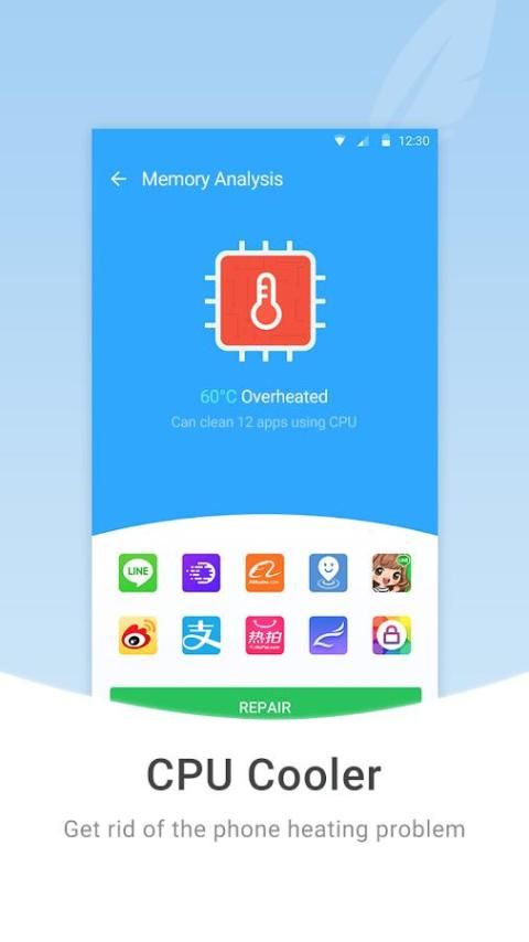 Detects and cleans apps that cause overheating. By continuously monitoring temperature changes, CPU Cooler can detect apps consuming lots of CPU resources and then clean them to reduce the phone’s temperature.