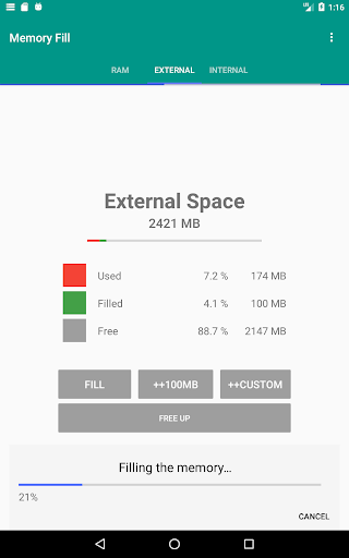Memory Fill is a simple, hassle-free app that will fill your Hard Disk Drive space or RAM or both