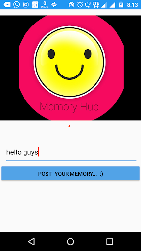 memory hub is a new social app where you share your new pic and also see from under new user post update without any restriction of request and accepting request and also hides user id and not allow to contact to the particular user ... so stay happy and share your memory... at memory hub
