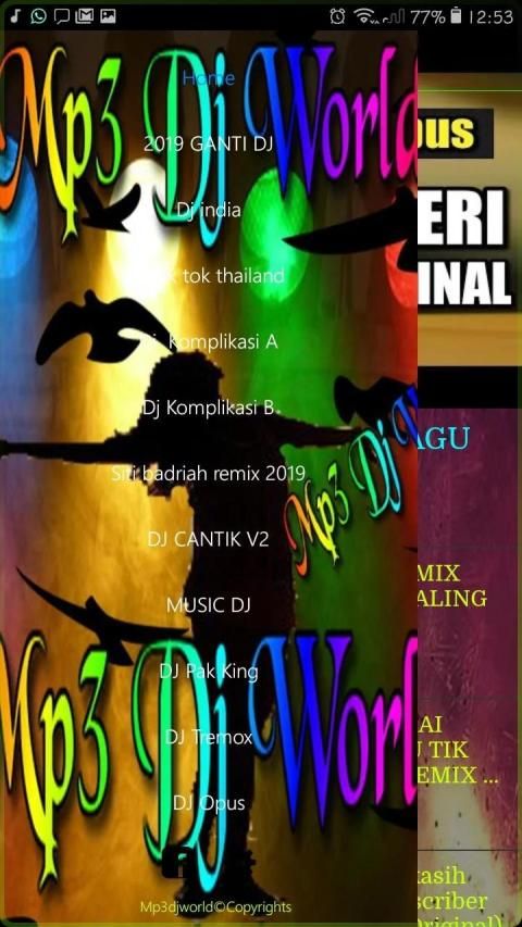 Aplikasi Mp3 Dj World yaitu sebuah aplikasi yang berisi kumpulan lagu – lagu dj remix, house musik, dugem remix yang terbaik dan terpopuler saat ini. Aplikasi musik dj yang dapat membuat kalian para penggemar musik dj ikut bergoyang saat mendengarkan lagu pada aplikasi ini karena kepiyaiwaian seaorang dj dalam memainkan musik dj.