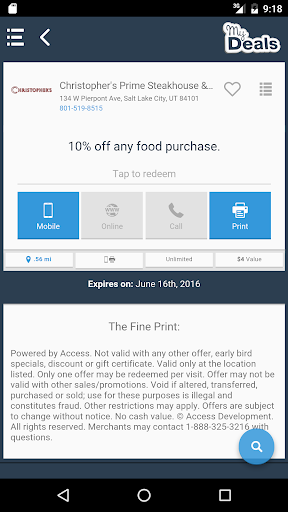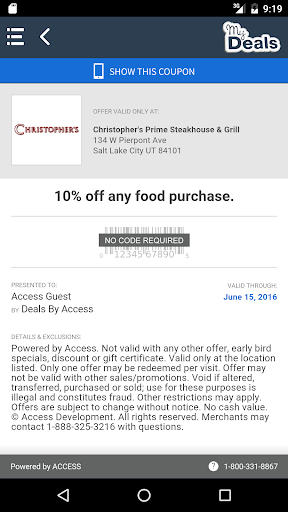 সদস্যরা এখন এমন একটি ডিল-ফাইন্ডিং অ্যাপ্লিকেশন উপভোগ করতে পারবেন যা আপনার জানা ব্র্যান্ডগুলি এবং আপনি যে স্থানীয় স্থানে চান সেগুলি থেকে বড় ছাড় দেয়। আপনি বাড়ির কাছাকাছি বা রাস্তায় থাকুন না কেন, কেবল আপনার মোবাইল ডিভাইস থেকে কুপনটি দেখান এবং রেস্তোঁরা, কেনাকাটা এবং আরও অনেক কিছুতে 50% পর্যন্ত সাশ্রয় করুন। আপনি প্রতিটি বড় শহরে এবং আমেরিকার বেশিরভাগ ছোট শহরে প্রচুর পরিমাণে সঞ্চয় খুঁজে পাবেন।