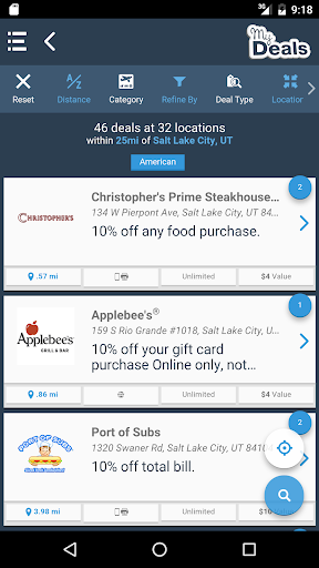 • জিপিএস অনুসন্ধান। আপনি যেখানেই থাকুন না কেন আপনার কাছের ডিলগুলি সন্ধান করুন