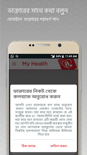 উঃ না। আমরা বুঝতে পারি যে একজন চিকিৎসকের কাছে অবিলম্বে পৌছাতে আপনার প্রয়োজনীয়তা থাকতে পারে। ডাক্তার পরামর্শের অনুরোধটি রাখতে মাই হেলথ অ্যাপ থেকে শুধু ডাক্তারের সাথে কথা বলার বাটন চাপুন। এই সেবায় রেজিস্টার্ড গ্রাহক এবং পরিবারের সদস্যদের জন্য কলব্যাক সুবিধা রয়েছে, তাই কিছুক্ষণের মধ্যেই আমাদের একজন ডাক্তার আপনার সাথে যোগাযোগ করবেন।
