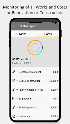 • ড্যাশবোর্ডটি আপনাকে উদ্দেশ্যমূলক ডেটাতে ভিত্তি করে সঠিক সিদ্ধান্তগুলি তৈরি করতে সহায়তা করবে, পরিষ্কারভাবে নির্মাণ বা বাড়ির উন্নতির কাজ এবং সম্পন্ন কাজগুলির অগ্রগতি দেখাচ্ছে