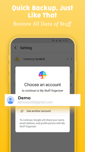 এই হোম ইনভেন্টরি ট্র্যাকার অ্যাপে, আপনার জিনিসের দ্রুত ব্যাকআপ নিন 'ব্যাকআপ ডেটা'নেভিগেশন ড্রয়ারে বিকল্প!সুতরাং, আপনি যখনই ডিভাইস পরিবর্তন করবেন, শুধু আপনার অ্যাকাউন্টে লগইন করুন &এটি পুনরুদ্ধার করুন!
