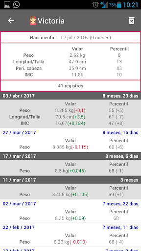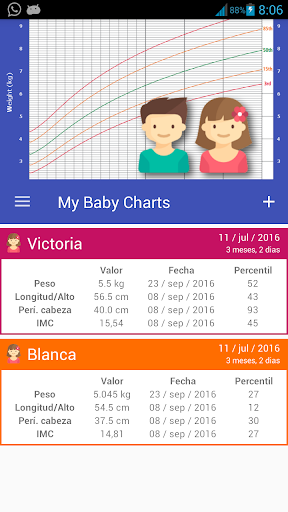 Mybabycharts আপনাকে আপনার শিশুর মূল পদক্ষেপগুলি (ওজন, আকার, মাথার এবং শরীরের ভর সূচকগুলির প্রধান পদক্ষেপগুলি রেকর্ড করতে এবং সময়ের সাথে তার বিবর্তনকে পর্যবেক্ষণ করতে দেয় এবং এটি প্রতিষ্ঠানের বিশ্ব স্বাস্থ্যের দ্বারা প্রকাশিত তথ্য অনুসারে এটি শৃঙ্খলা অর্জন করে।
