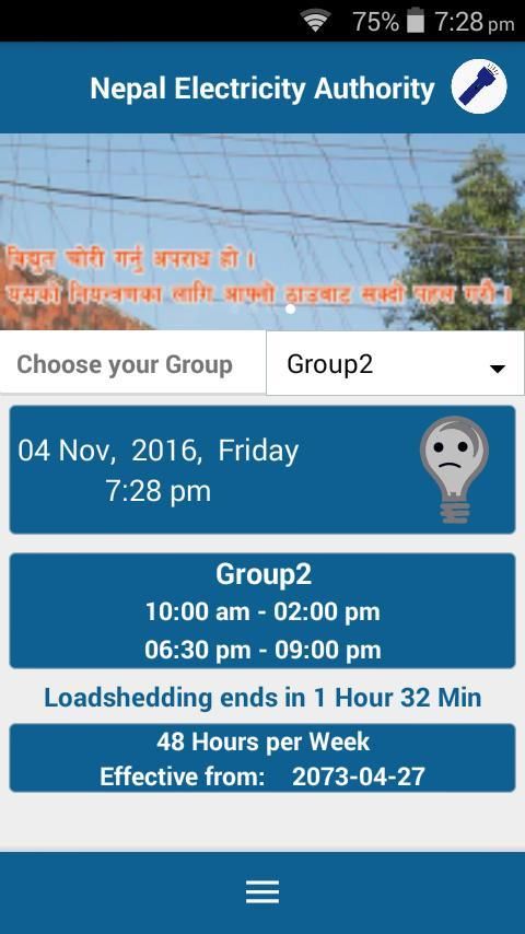 NEA Load shedding android app provides easy and reliable means to get information about power cut. There are seven groups for scheduled load shedding for all effective date. User needs to select their respective group to save information for auto response from the app. Moreover, one can view schedules for all other groups.