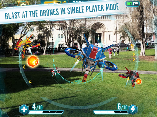 * Augmented Reality drone battling in solo mode on compatible smart devices (devices require gyroscope)