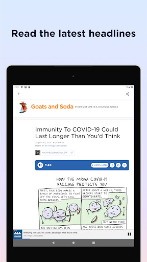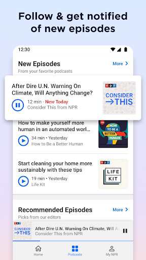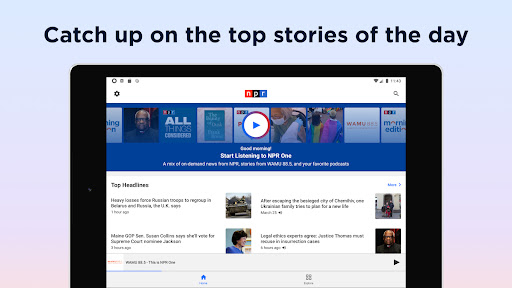 কেবল হোম স্ক্রিনের বড় প্লে বোতামে আলতো চাপুন এবং এনপিআর আপনাকে জানতে পারে। আপনি যা চান না তা এড়িয়ে যান বা কোনও গল্পকে আকর্ষণীয় হিসাবে চিহ্নিত করুন। যদিও আপনার মিশ্রণটি আপনার পছন্দ মতো গল্পগুলি সরবরাহ করার জন্য ব্যক্তিগতকৃত করা হয়েছে, আপনি এখনও দিনের শীর্ষ সংবাদটি শুনতে পাবেন এবং আপনার কোনও ধারণা ছিল না এমন গল্পগুলি আপনাকে মোহিত করবে