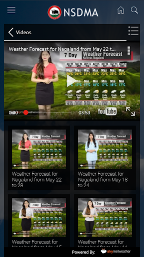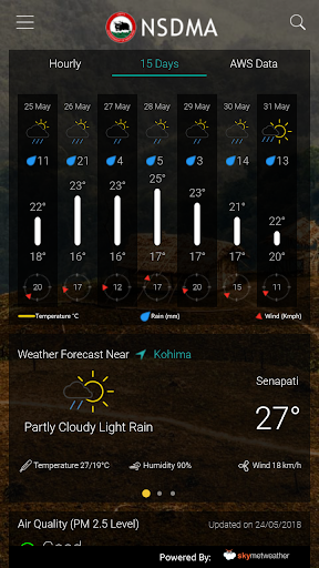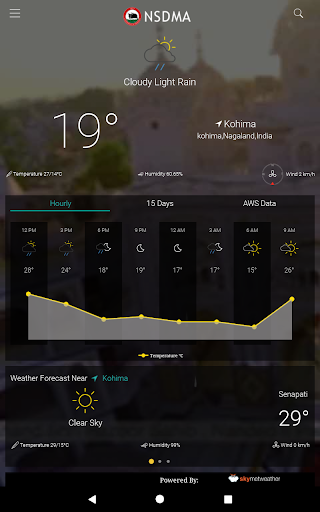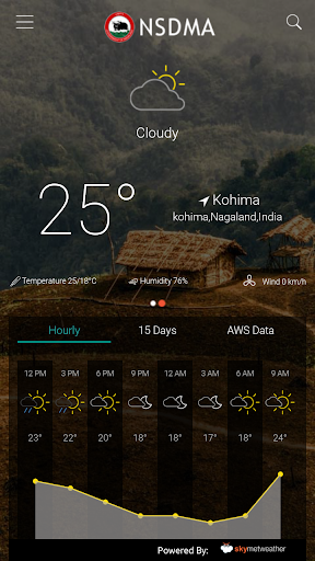 স্বয়ংক্রিয় আবহাওয়া স্টেশনের স্কিমেট নেটওয়ার্ক দ্বারা চালিত, এই অ্যাপ্লিকেশনটি স্বল্পমেয়াদী এবং দীর্ঘমেয়াদী আবহাওয়া সরবরাহ করে নাগাল্যান্ডের রাজ্যের পূর্বাভাস।