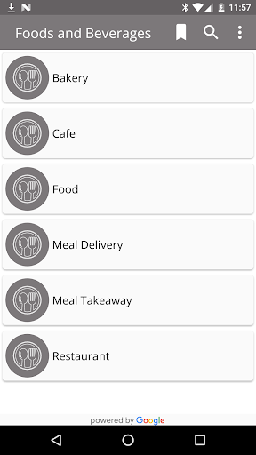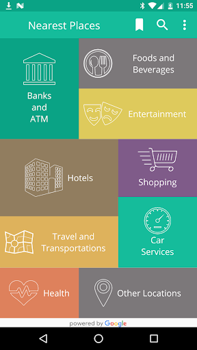 Nearest Places offer you a fixed list of places categories contain more than 70 categories, You can also search for locations by keyword.