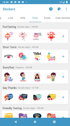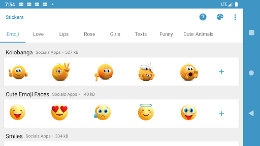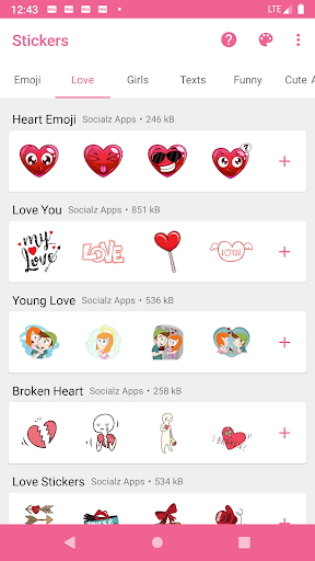 আপনি এই অ্যাপটি বিনামূল্যে ডাউনলোড করতে পারেন।স্টিকারগুলি ওয়াস্টিকার ডাউনলোড করার পরে, আপনি এটি আপনার বন্ধুদের সাথে ভাগ করতে পারেন।সাধারণ রোমান্টিক স্টিকারগুলি হোয়াটসঅ্যাপ বার্তার মাধ্যমে আপনার ভালবাসা প্রেরণ করতে পারে।গোলাপ এবং অন্যান্য কমনীয় ফুল প্রাপকদের আনন্দিত করবে।বুদ্ধিমান ইমোজি বন্ধুত্বপূর্ণ চ্যাটকে আরও মজাদার করে তুলবে এবং অ্যানিমেটেড ইমোটিকনগুলি আপনাকে হাসি দেবে।স্টিকারগুলি সেই আবেগগুলি প্রকাশ করতে সহায়তা করবে যা কথায় কথায় বলা শক্ত।এছাড়াও, আমরা নতুন স্টিকার এবং জিআইএফ যুক্ত করব।আমরা ভবিষ্যতে অ্যাপ্লিকেশনটির কার্যকারিতা বৈচিত্র্যময় করার পরিকল্পনাও করি।আপনার এখনই এই সুবিধাগুলির সুবিধা নেওয়ার সুযোগ রয়েছে