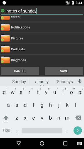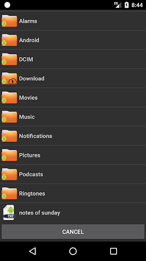 Choose any folder you want to save your text file in the file system thanks to the implemented file manager.