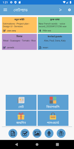 নোটস, চেকলিস্ট, ছবি, ভয়েস রেকর্ডস, জন্মদিন এবং পাসওয়ার্ড সহ নোটপ্যাড