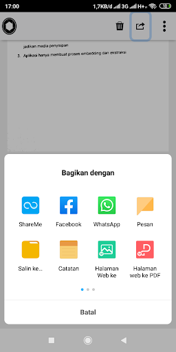 5. Terdapat fitur share ke aplikasi lain di hanphone pengguna, (Whatsapp, SMS, Facebook)