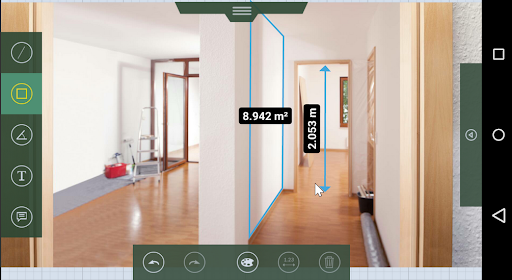 - Mark lengths and areas in your photos and import the exact measured values from your laser measure