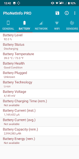 : ব্যাটারি স্তর, ব্যাটারি অবস্থা, স্বাস্থ্য, তাপমাত্রা, ভোল্টেজ, ক্যাপাসিটি, ইত্যাদি