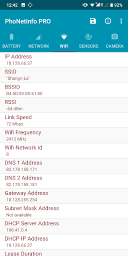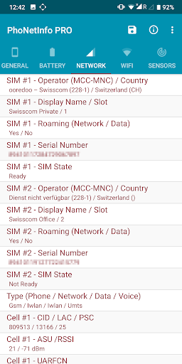 : নেটওয়ার্ক অপারেটর, এমসিসি, এমএনসি, আইএমইআই, আইএমসিআই, সেল আইডিএস, সিগন্যাল স্ট্রেংল, এএসইউ, লেক, সিকিউরি, আরএসআরকিউ, ব্যান্ডউইথ ইত্যাদি।
