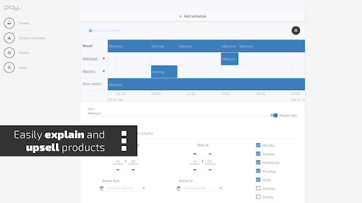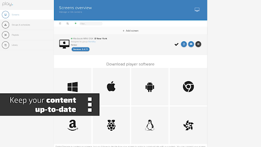 গতিশীল এবং প্রাসঙ্গিক সামগ্রী, আরও গ্রাহকের ব্যস্ততা এবং বর্ধিত দৃশ্যমানতা।সুবিধাজনক প্লে সিগনেজ অ্যাপ্লিকেশন থেকে সমস্ত।তুমি কিসের জন্য অপেক্ষা করছো?