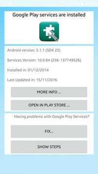 This app helps you to know the version of your google play services, you can see the date of installation of the Play Services and also the date of the last update.