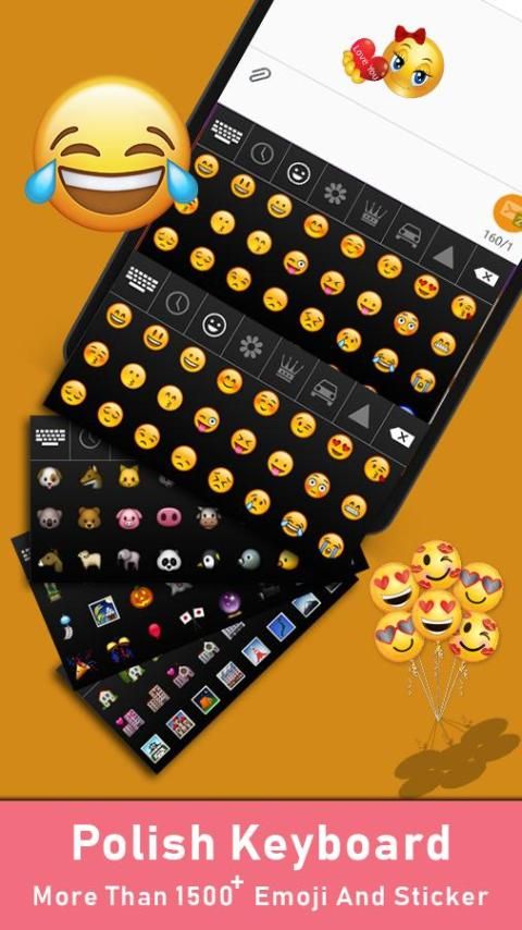 Polish Keyboard has more than 50 emojis, stickers, smileys etc.