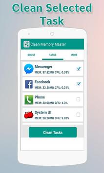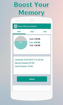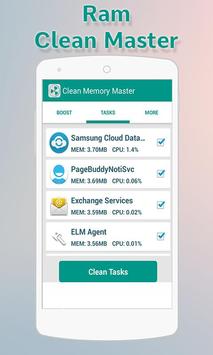 RAM Clean Master is a lightweight application that can increase the performance of your device by clearing the RAM, Boost your memory, Clean Background task and making more free memory available to your device.