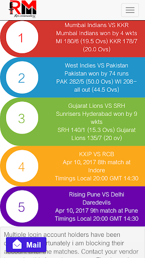 All Completed runs in 10,20,30,40,50 First Batting and second batting only 10 in case of ODI,