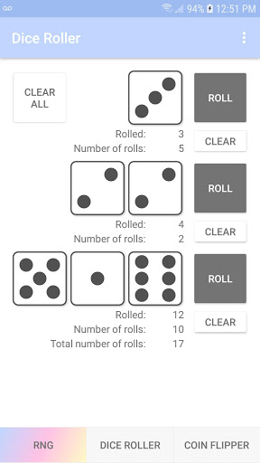 - 1, 2 বা 3 ডাইসের সাথে ডাইস রোলার এবং রোলগুলির সংখ্যা দেখায়