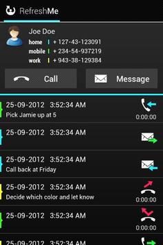 RefreshMe works without effort, just install it and the next phone call will already feel different. It automatically starts when a call is received or made and provides the past history with that person on your screen for your easy review. You’ll know when you last spoke with the person, received a message, and what it was concerning.