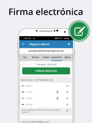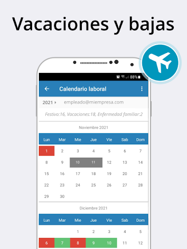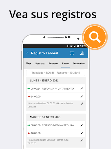 আপনি কাজের সময় রেকর্ড করতে পারেন এবং ঘন্টা কাজ, অতিরিক্ত সময়, পরিপূরক ঘন্টা ইত্যাদি নিয়ন্ত্রণ রাখতে পারেনআপনি ছুটির দিনগুলি, ছুটির দিনগুলি বা এটি প্রত্যাহার করা হলেও কাজের ক্যালেন্ডারটি দেখতে পারেন।অবকাশের অনুরোধ করুন, দিনগুলি ছুটির দিনগুলি নির্দেশ করুন, ক্ষতিপূরণ দিনগুলি ইত্যাদিমোবাইল অ্যাপ্লিকেশনটিতে প্রতিদিন, সপ্তাহ বা মাসে কাজ করা ঘন্টাগুলি নিবন্ধকরণ রয়েছে এবং শ্রম প্রতিবেদনে সংশোধন করার জন্য অনুরোধ করতে পারেন এবং শ্রম রেজিস্ট্রিতে স্বাক্ষর করতে পারেন