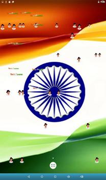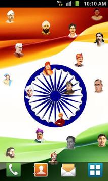 Mahatma Gandhi, Bhagat singh, aurobindo, Jan's I laxmi bhai, Subhash Chandra Bose, Bahadur Shah Zafur, Mangal Pandey, Swami Vivekananda, Sarojini Naidu, Sarvepalli Radhakrishnan, Chandrashekhar Azad, Maulana Mohammad Ali Jauhar, Jawaharlal Nehru, Bhagat Singh etc... are the India freedom fighters. This live wallpaper honors freedom fighters by popping their images on the screen.
